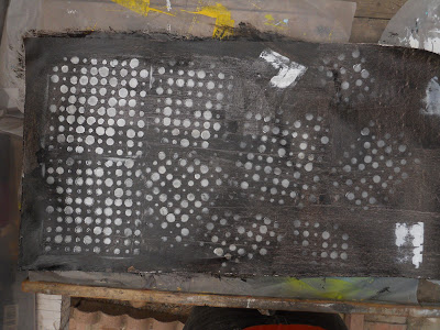This is what I added to it! I don't like the rug canvas showing- if I do this technique again I will spray paint it a dark color!!